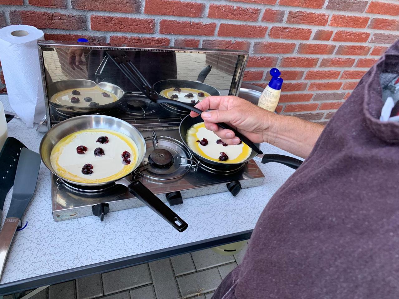 Daarna gezellig met de buurt kersenpannenkoeken gebakken en gegeten.